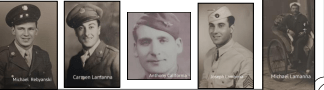 Pvt. Mike Rebyanski 5/1/43 Ft. Meade, MD Carmen Lamanna 12,17, 42 Sgt. Anthony Lamanna, California 11/17/1942 Texas Cpl. Joe Lamanna 1/18/43 Ft. Bragg, NC Mike Lamanna, USS Minneapolis, San Fransicso, CA