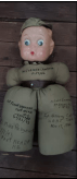 This doll belonged to Josephine Lamanna Rebyanski. The signatures are from young men departing for WWII. The doll has their names, date of enlistment, and the military
