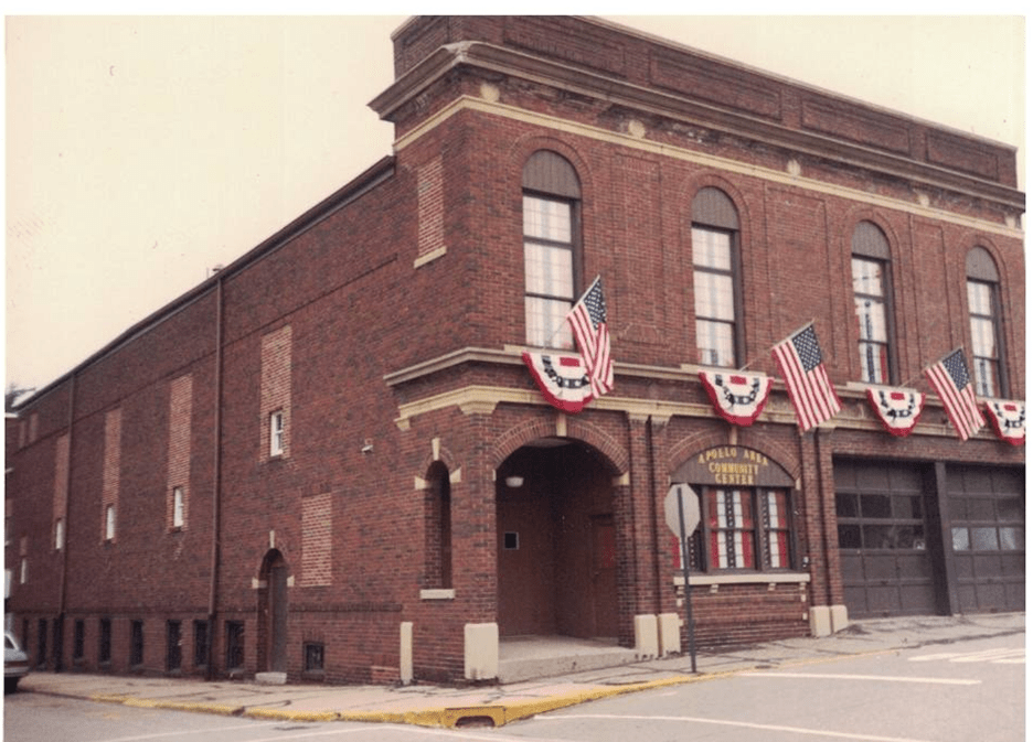 In the spring of 1974, a group of citizens came together to investigate the need for a community center in Apollo. The citizen-driven committee brought together representatives from various civic groups, industry, churches, and businesses, along with representatives from Apollo, North Apollo, and Kiski Township governments. The group set its sights on the former Apollo Hose Co. No. 2 since it included a large auditorium and stage, as well as kitchen, restrooms, and three meeting rooms. They decided the building would need some renovations to better meet the region’s needs, and funding would be secured through independent sources.