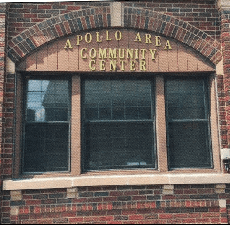 During a rededication ceremony on April 22, 1979, Mayor William Kerr helped celebrate the completion of renovations and the fifth anniversary of the center by dedicating the south end of the municipal building as the Apollo Area Community Center.