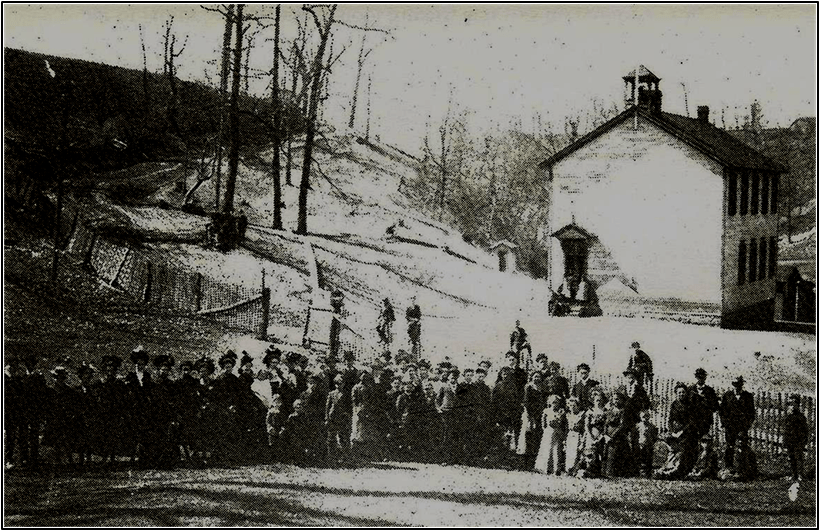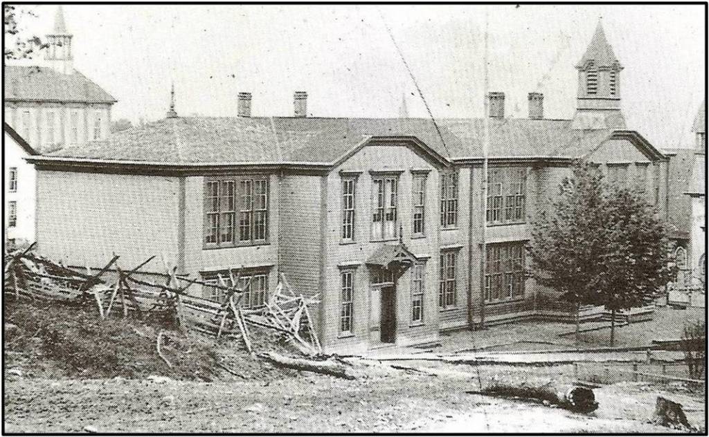 In 1863, a new wooden school was built on the corner of North Second Street and School Street. It had six rooms and served the community well.