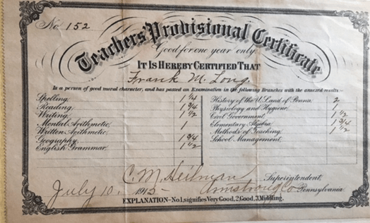 The slideshow below features the Shady Plain schoolhouse, built in 1857 in Kiski Township. Many of the photos are undated. There is a photo of Mrs. Bertha Ridenour Donaldson who was born in Maysville, Armstrong County, PA. The early part of her life was spent in that place. She received her common school education in the Maysville school, later attending Eldersridge Academy. Her career as Public School teacher began in 1891 at Hilty’s school. She taught five years in Armstrong County, including one year at the Shady Plain school, and two years in Westmoreland County. The Shady Plain school closed in 1952 and is now a privately owned building being restored.