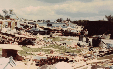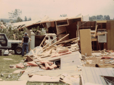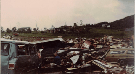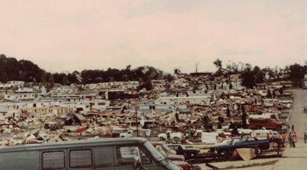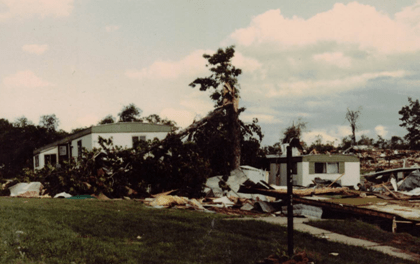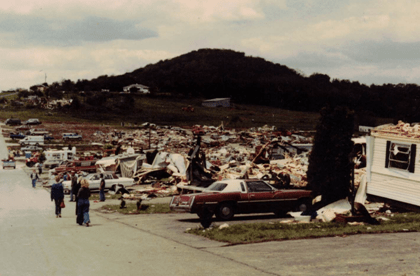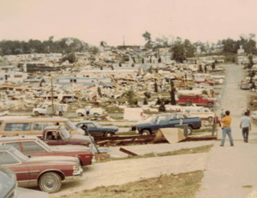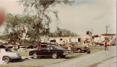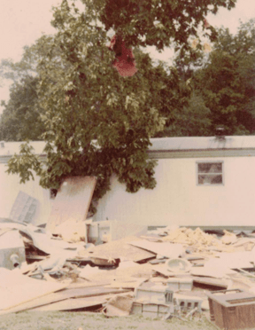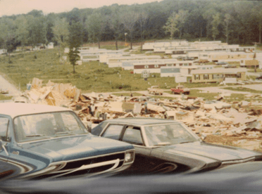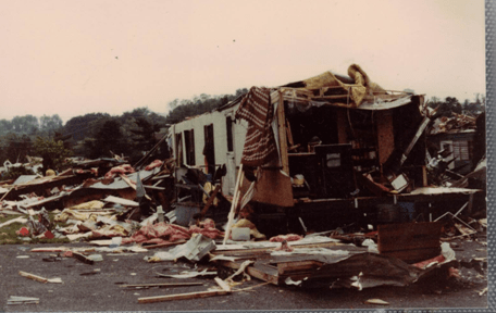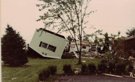 I lived in Edgewood Estates and was there when the tornado hit. I had recently completed 8th grade and was ready for a fun summer. My sister and I had just made some lunch when our neighbors came and got us because they saw it coming and we got in their car. Luckily for us it crossed to the other side of the street right before it hit us so our trailer had little damage except broken windows. I still worry whenever a big storm hits in May or June.