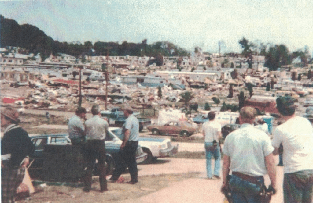 A day our family will never forget. We lived in Edgewood Estates and lost everything. We are lucky to have lived through it-scariest thing I had ever experienced. I was 9 years old and injured and they were just tossing us in vehicles to go get medical attention. Our whole family was separated and at that age I thought I’d never see my family again. We were homeless for many months. My sister and I hardly have any childhood photos as they were destroyed.