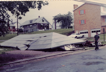 Looking back, the morning of June 3 was beautiful.  Bad weather was not expected.  After going through Natrona Heights, Melwood Manor, and Vandergrift, the tornado followed the river through North Apollo, then along Sugar Hollow Road to Edgewood Estates.  The park was the most devastated part of the storm’s path. The storm became an F4 with a path over 300 ft. wide when it hit there.