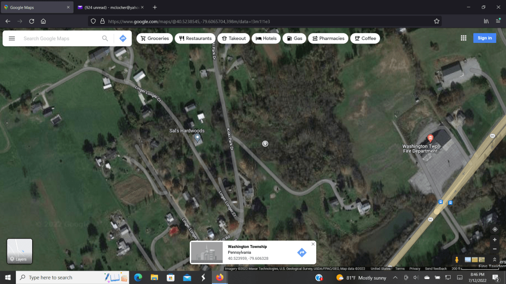 “If you pull up https://www.historicaerials.com/viewer and type in Apollo, PA as your location then slide the map to the intersection of 66 and 380 . Click on aerials, then each year in the listings and enjoy your trip though time. The first copy paste screen shot is 1952. The dark triangle type object I believe is the pool. Please note that it IS copyrighted material so can not post – but if you do a membership for a month or 6 months I think you can download low res images. It might be cool to have aerials photos added for all of “places and buildings” on your list. The screen shot copy paste is Google Maps with an approximate pinned location of the pool.”