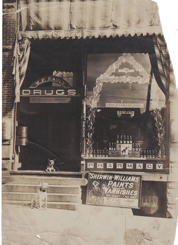 Mr. W.F. Pauly opened a drug store in Apollo in 1894. His boyhood home was in Greenville, PA. He was graduated from the University of Pittsburgh in 1892. His store was located in a part of the Chambers Hotel near the Apollo Trust Company building. As part of his service to the community he registered births at the county Court House as they were reported to him by the doctors in the community. His sons, William J. who was also a registered pharmacist, and Franklin worked in the store and continued to operate it until 1964.