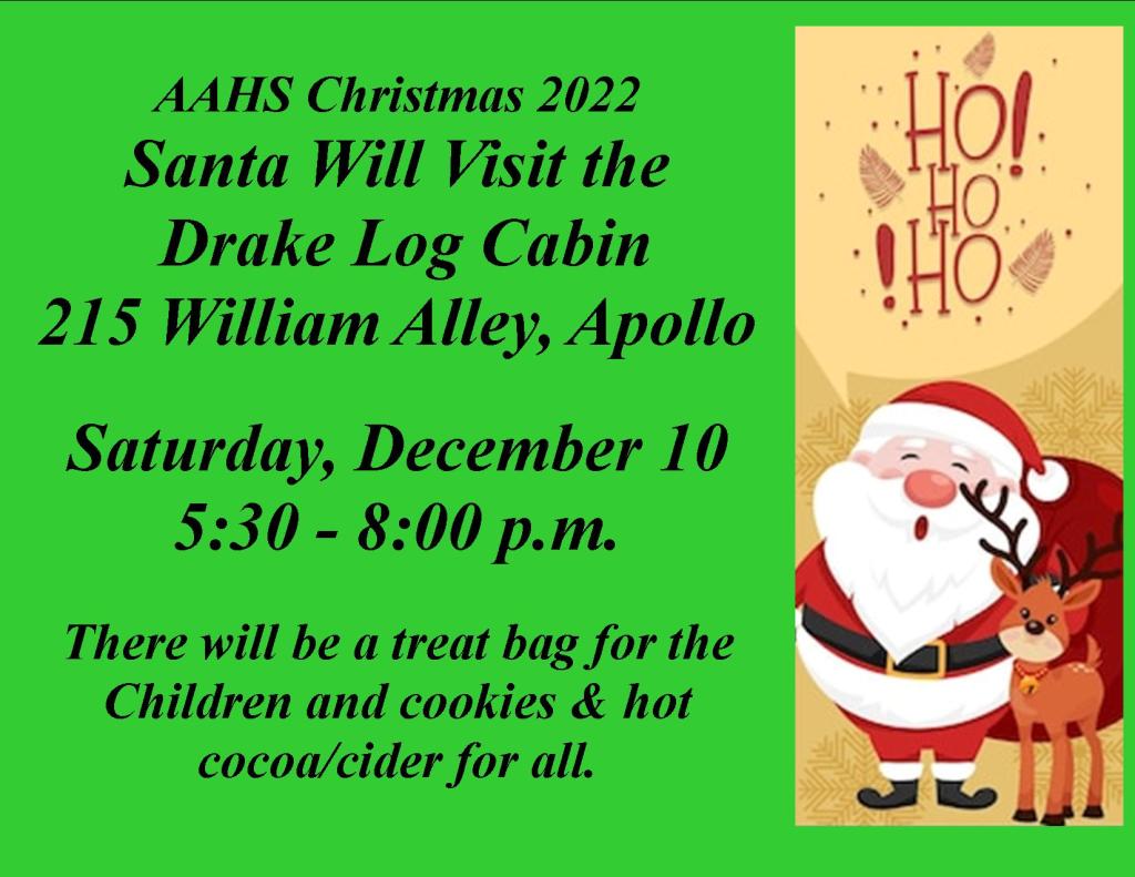 Santa and Mrs. Claus will be inside the Cabin with the fireplace lit up. There will be elves helping the families enter the cabin through the front door and exit through the back. Everyone is welcome to take pictures of your little ones with Santa. There will be Christmas Music playing, Luminaries and Candles lighting up the paths, the children will all get treat bags loaded with goodies. Hot chocolate, warm cider and tons of cookies for all. We’ll have a couple campfires going outside for the any and all to get warm and roast marshmallows. Park in the Apollo Shopping Center parking lot and follow the signs to the Log Cabin.